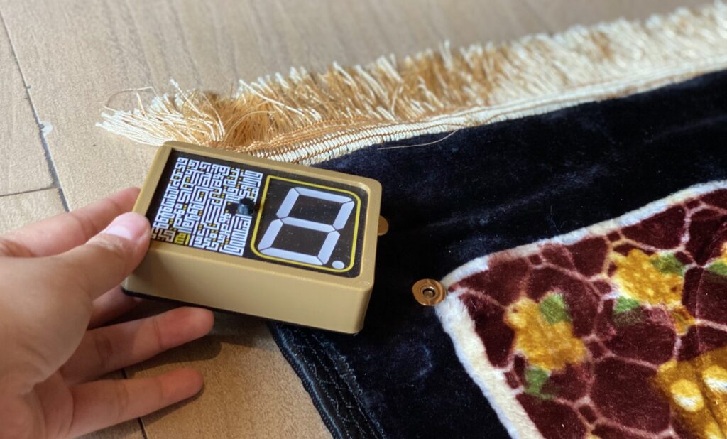 Sebelum mencuci, pastikan untuk melepas layar counter dari sajadah. Ini penting untuk menjaga agar komponen elektronik tidak terkena air dan tetap aman selama proses pencucian.